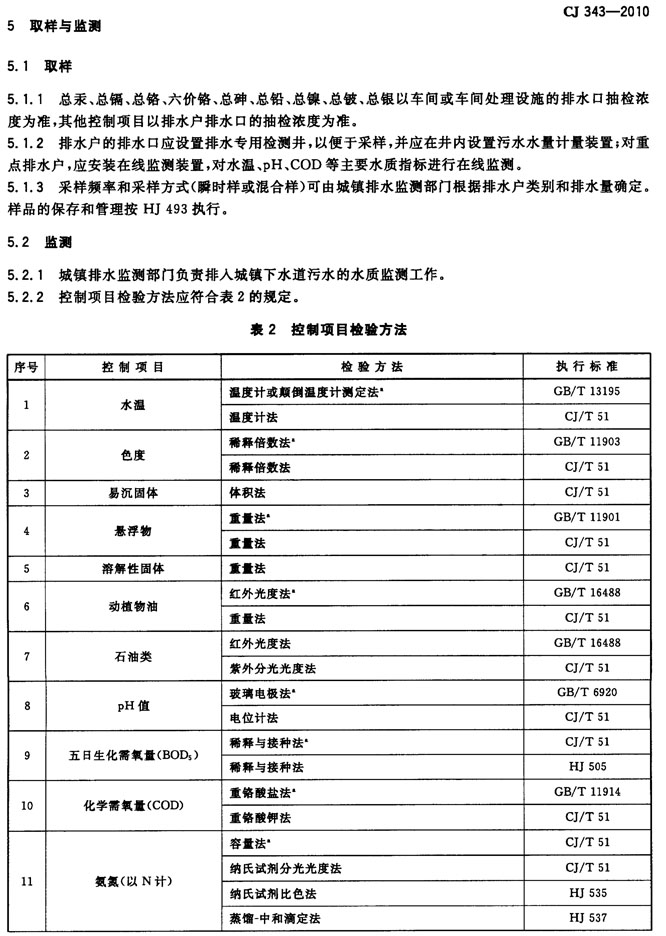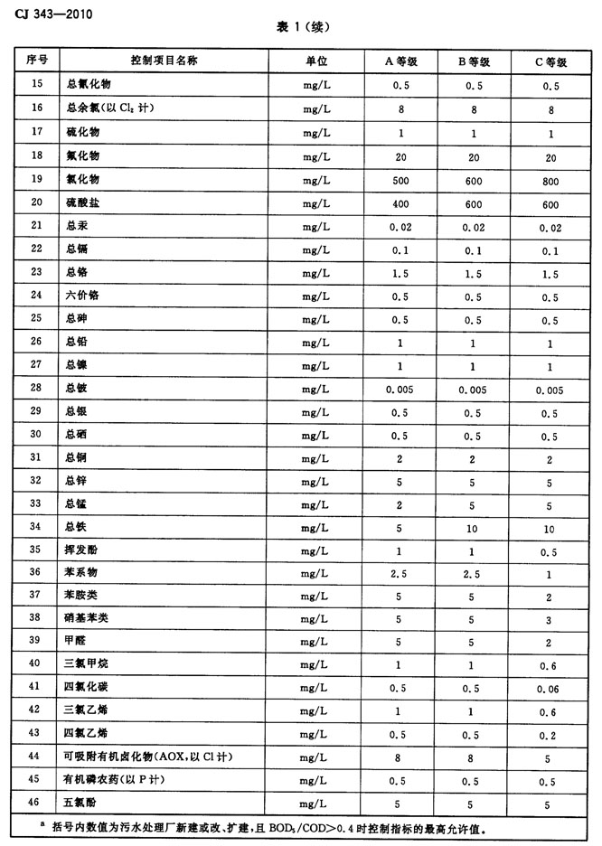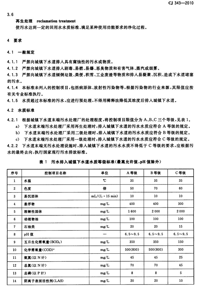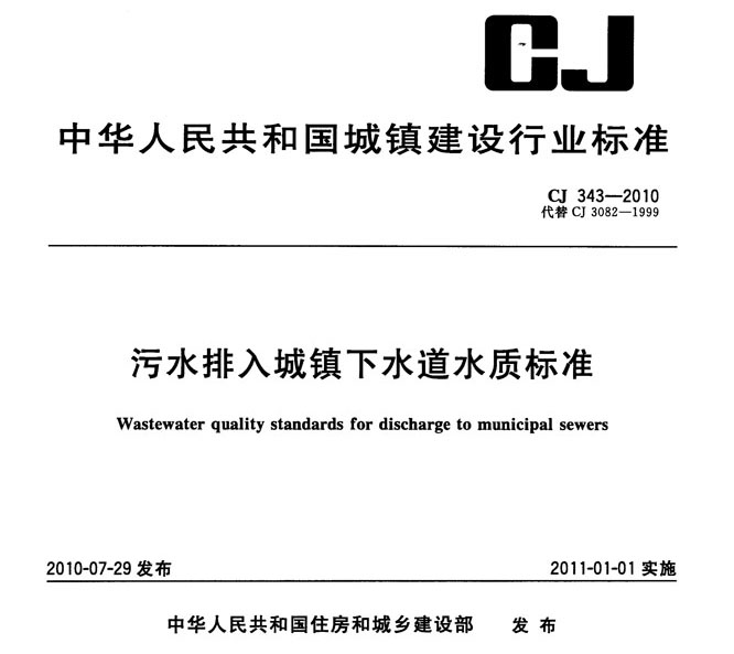 污水排入城镇下水道水质标准 CJ_343-2010