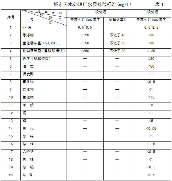 3.2经城市污水处理厂处理的水质排放标准,应符合表1的规定。